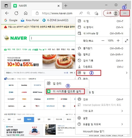 모바일에서 바로가기 만들기